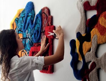 Trabalho em arte têxtil da pernambucana Laís Domingues, em exposição no Sesc Tijuca