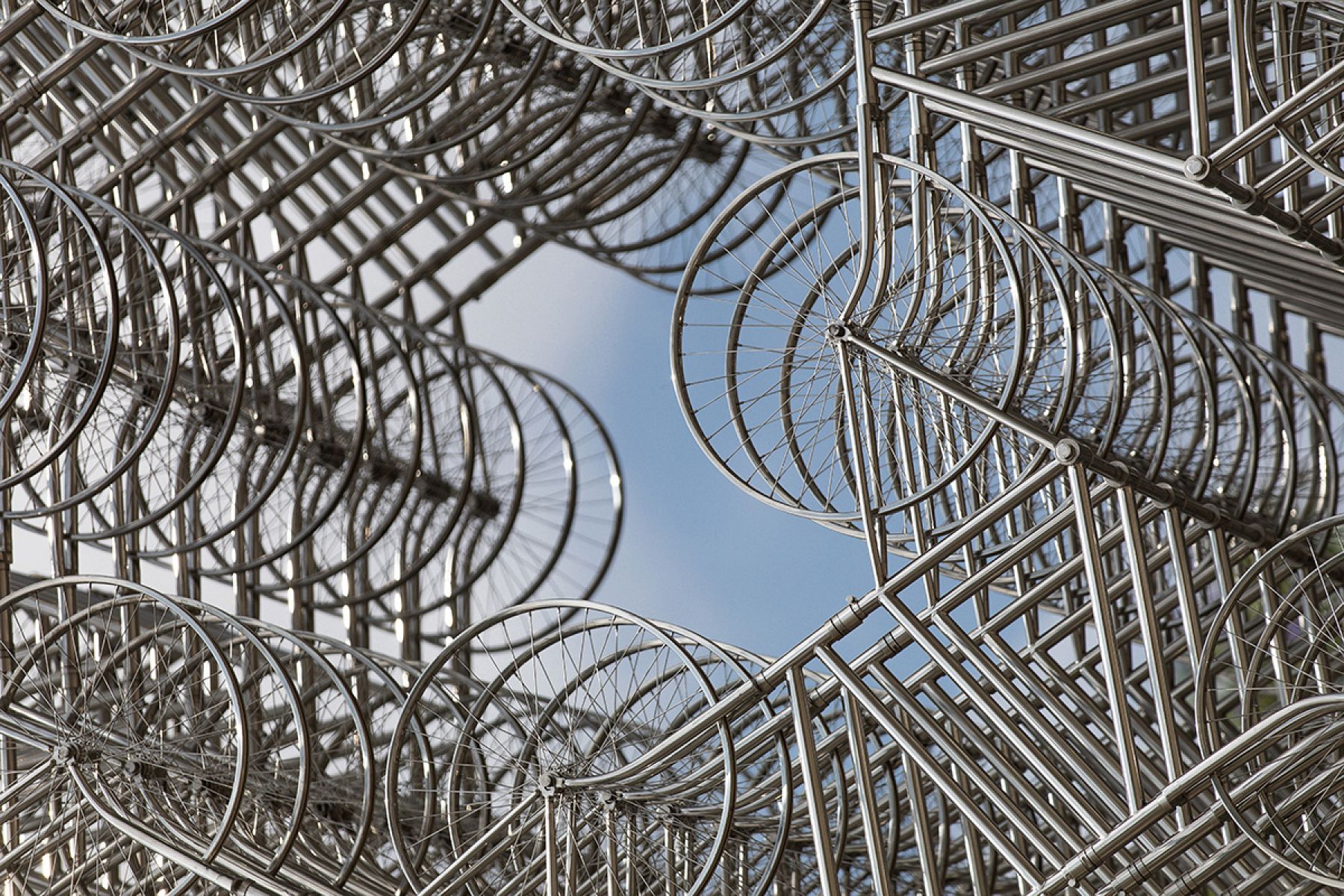 Apesar disso, a overdose de textos acaba funcionando também como mais uma camada de reverberação dos signos culturais repetidos e contrapostos nos trabalhos. Ao mesmo tempo em que ressaltam diferenças entre Ocidente e Oriente, os ícones de massa diluem fronteiras geopolíticas, na globalização que nivela por baixo, escravizando indivíduos na produção em série padronizadora e desterritorializante. Da mesma forma que Ai Weiwei, nesse panorama somos todos exilados sem direito ao conforto paralisante do pertencimento nacional, com seus costumes e linguagem que nos afirmem ser este ou aquele o solo sobre onde repousar. Estamos sempre em marcha, seja nas Bicicletas forever (2017) ou no barco inflável gigantesco de Lei da jornada (2017).